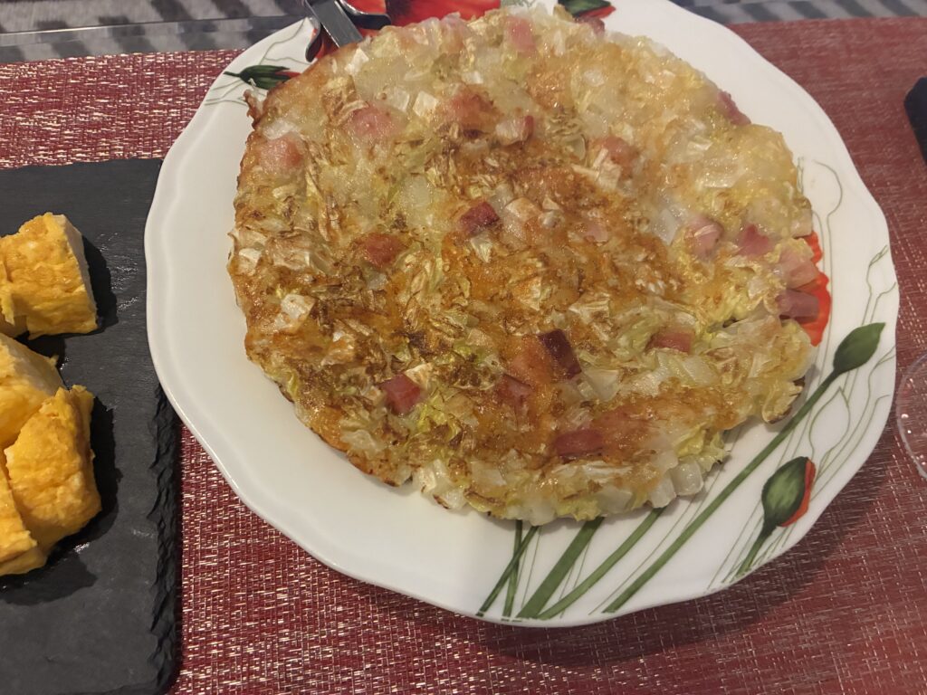 これ白菜の食べ方の革命かもしれん。刻んで片栗粉、ベーコン、チーズと混ぜて焼くだけ。甘くて香ばしくて旨味が濃い!外はこんがり、中はトロトロシャキシャキ。軽くてなんぼでもいける。芯までグルタミン酸が多く含まれてるんでカツオ節入れたんかと思うような旨味です。ハッシュド白菜、ぜひ。 pic.twitter.com/hKsdNsu0wN