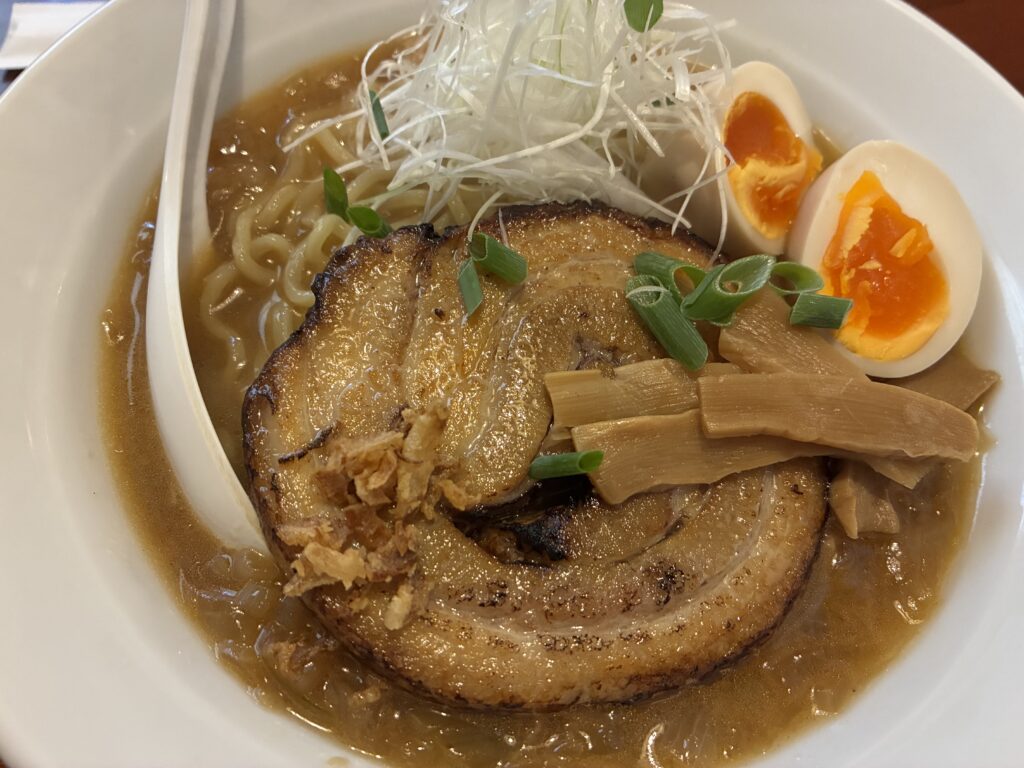 玉ねぎラーメンといえばアリランラーメンが有名ですが、そことは全然違うラーメンです。醤油濃いめで胡椒が効いたアリランラーメンとは違いこちらは優しい甘めのスープが特徴です。同じ玉ねぎの風味でもこんなに風味が違うのかと玉ねぎの可能性を感じます。どちらも違った美味しさがありどちらも好きです。