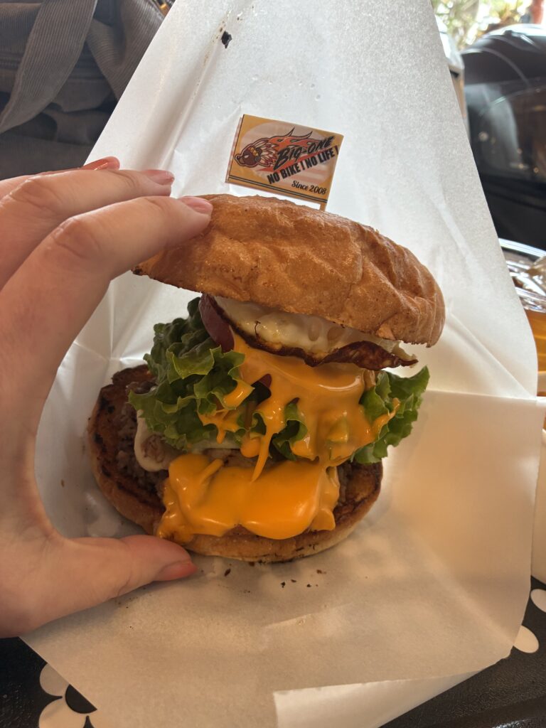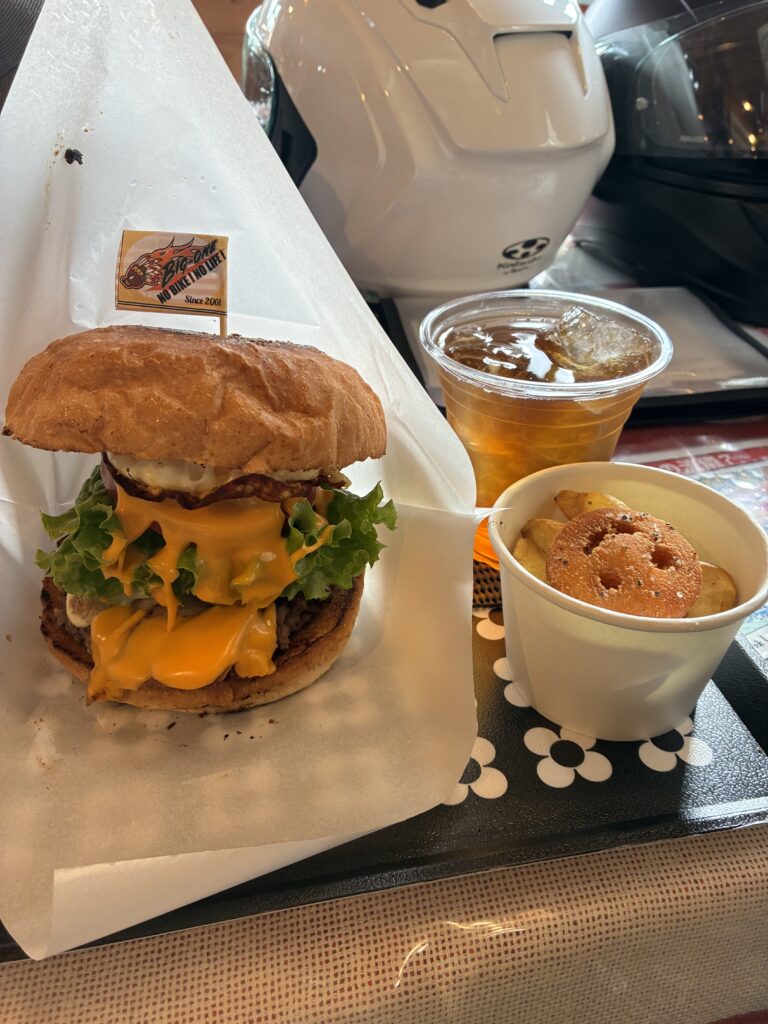 上から下まで一口で口に入れるのは無理なので上半分、下半分ずつ頬張ります。まずパンが焼いてあってカリサクなのが好みです。そんで次にベーコン、ウマーとなりました。肉もとても肉肉しくて全体的に美味しかったです。中の甘いソースは個人的にはない方が好きだけど、それも含めイメージするアメリカンバーガー!って感じでとても良かったです。また食べたい。