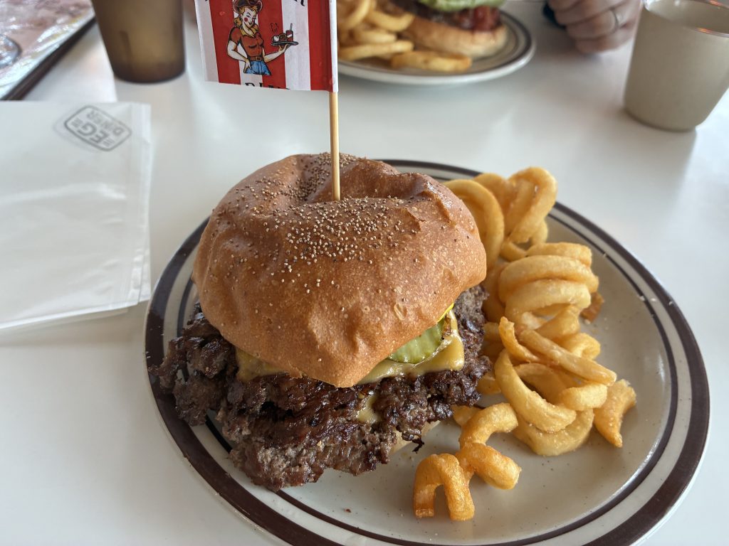 ハンバーガーはボリュームがあり、スマッシュバーガーのパティはカリカリ香ばしくてかなり好みでした。