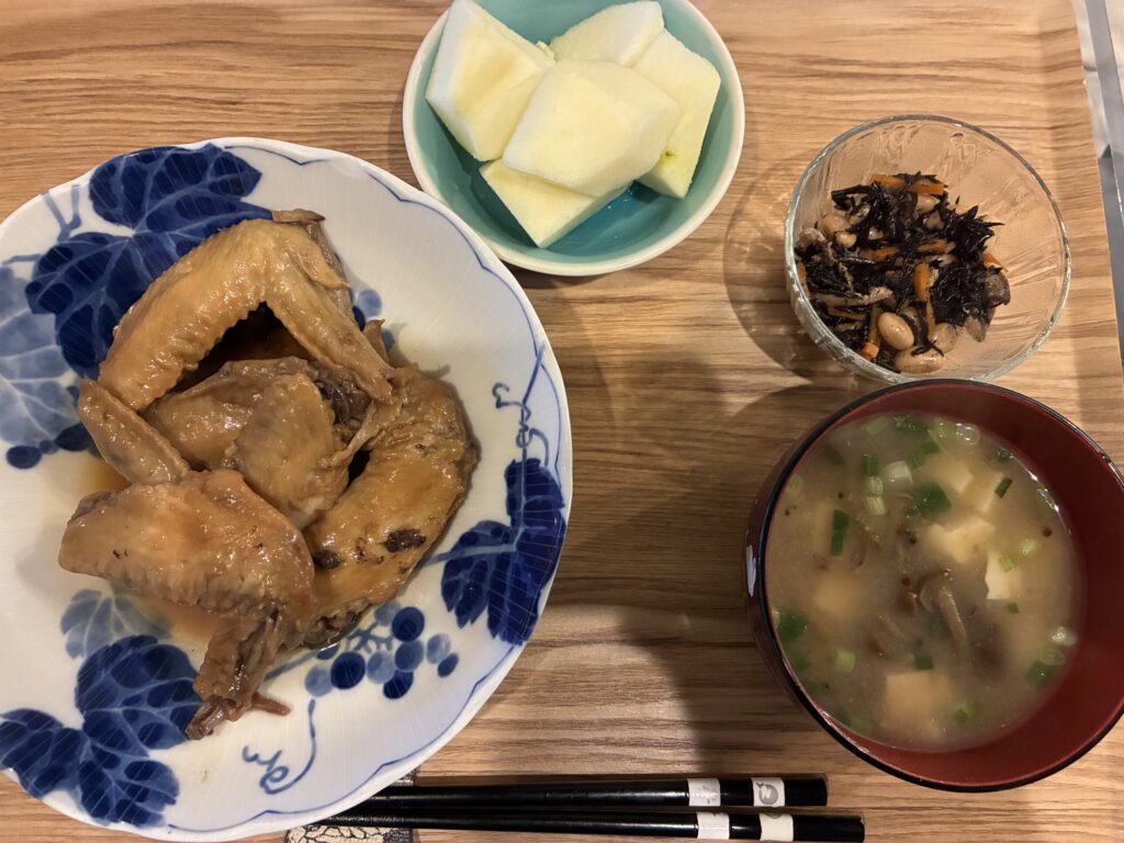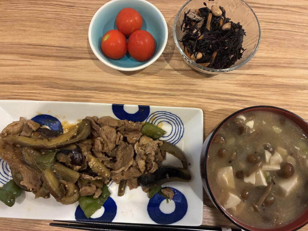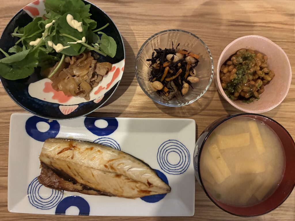 豚こま生姜焼き ルッコラサラダ 豆腐油揚げ味噌汁