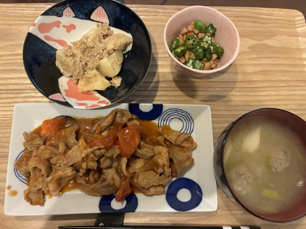 豚こまトマトのオイスター炒め ジャガイモのツナ和え