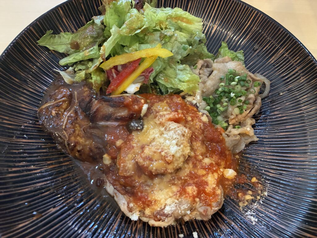 欲張ってお肉メニュー全部のったワイルドランチにしたけど、失敗だったかな。美味しいけど全てがトマトソースに負けてしまった。ローストチキンが一番美味しかったのでローストチキンだけのがいいかも。