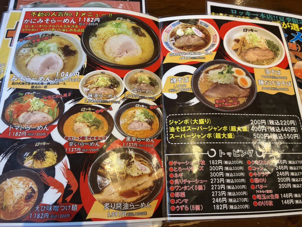 定番のカニ味噌ラーメンや私が頼んだ辛いラーメンなど同じメニューももちろんあります。しかし!!メニューは同じでも味は全然違いました。