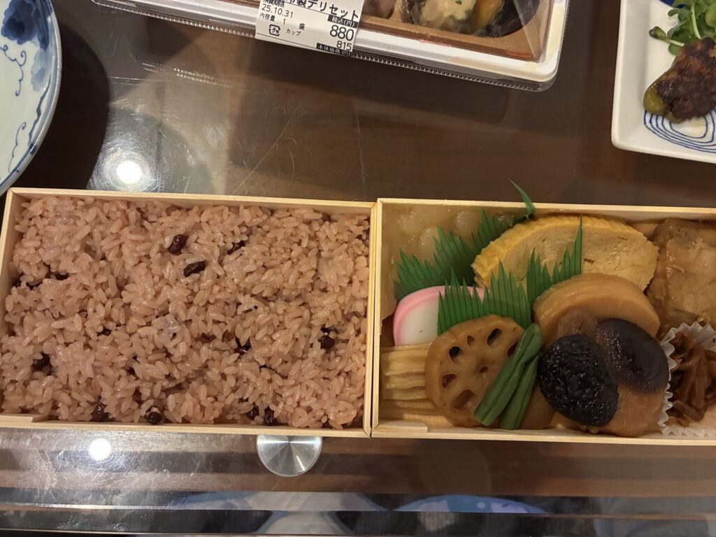 現存する最古のお弁当やさん。SNSで見かけてめちゃ美味しそうで気になってた。並六赤飯弁当1566円。昔ならがのお弁当らしい日持ちするようにかなり甘めの味付けで大変に私の好みでした。赤飯の餅米もおいしかったです。