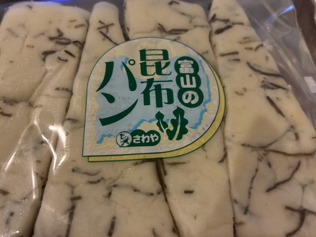 美味しそうなもの色々売ってたけど、他にも食べ物色々買ってたのでとりあえずこれだけ買ってみた。不思議なパン。白いもちもちした生地のパンに昆布が入っている。不味いわけじゃないけど食べてて「、、、、?」ってなる。多分富山の人には故郷の味ってやつだと思う。