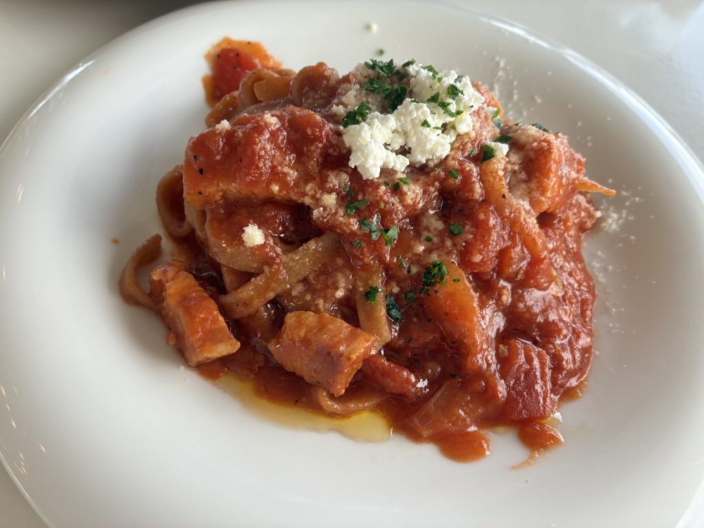 米粉のパスタはパスタというよりこんにゃく麺のような食感で自分はあんまりだったかなあ。ソースは美味しかったので好みだと思います。